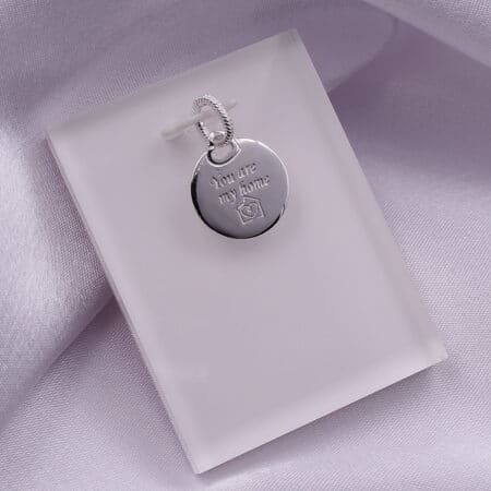 Emotivni srebrni medaljon (925) sa ugraviranom porukom „You are my home“ i simbolom kućice. Prečnik 1,6 cm, težina 2,5 g. Savršen romantičan poklon koji nosi snažnu simboliku ljubavi i pripadnosti.