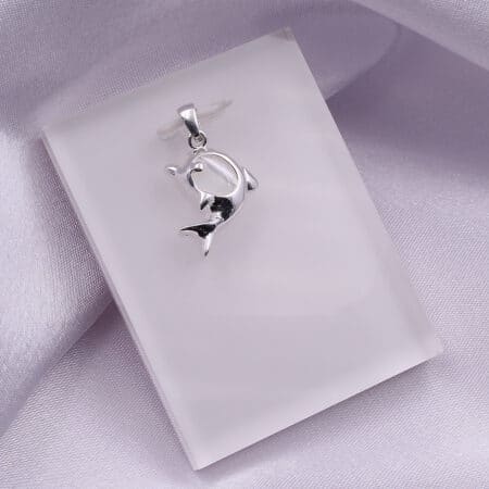 Elegantan srebrni privesak (925) u obliku delfina u skoku, dimenzija 2,5 x 1,5 cm. Telo delfina krasi umetak od imitacije sedefa sa prelepim mlečnim odsjajem, dok su peraja izrađena od visokopoliranog srebra. Simbol inteligencije, prijateljstva i slobode.