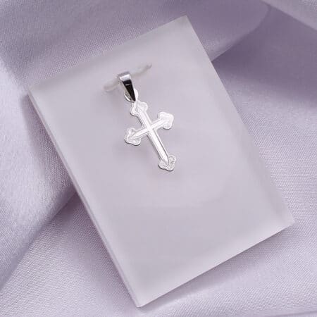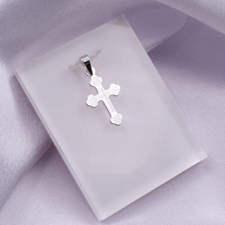 Prefinjen srebrni krstić (925) dimenzija 2,7 x 1,5 cm. Ovaj model krasi posebna simbolika – na svakom od četiri kraka urezbaren je po jedan manji krstić. Sa težinom od 1 g, lagan je i idealan za krštenja ili kao diskretan, svakodnevni simbol vere.
