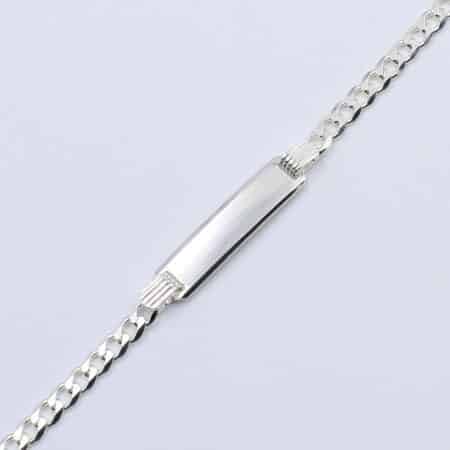 Klasična i elegantna narukvica za decu od srebra 925. Dizajnirana sa centralnom pločicom pogodnom za graviranje imena ili važnog datuma, predstavlja savršen poklon za rođenja i krštenja.