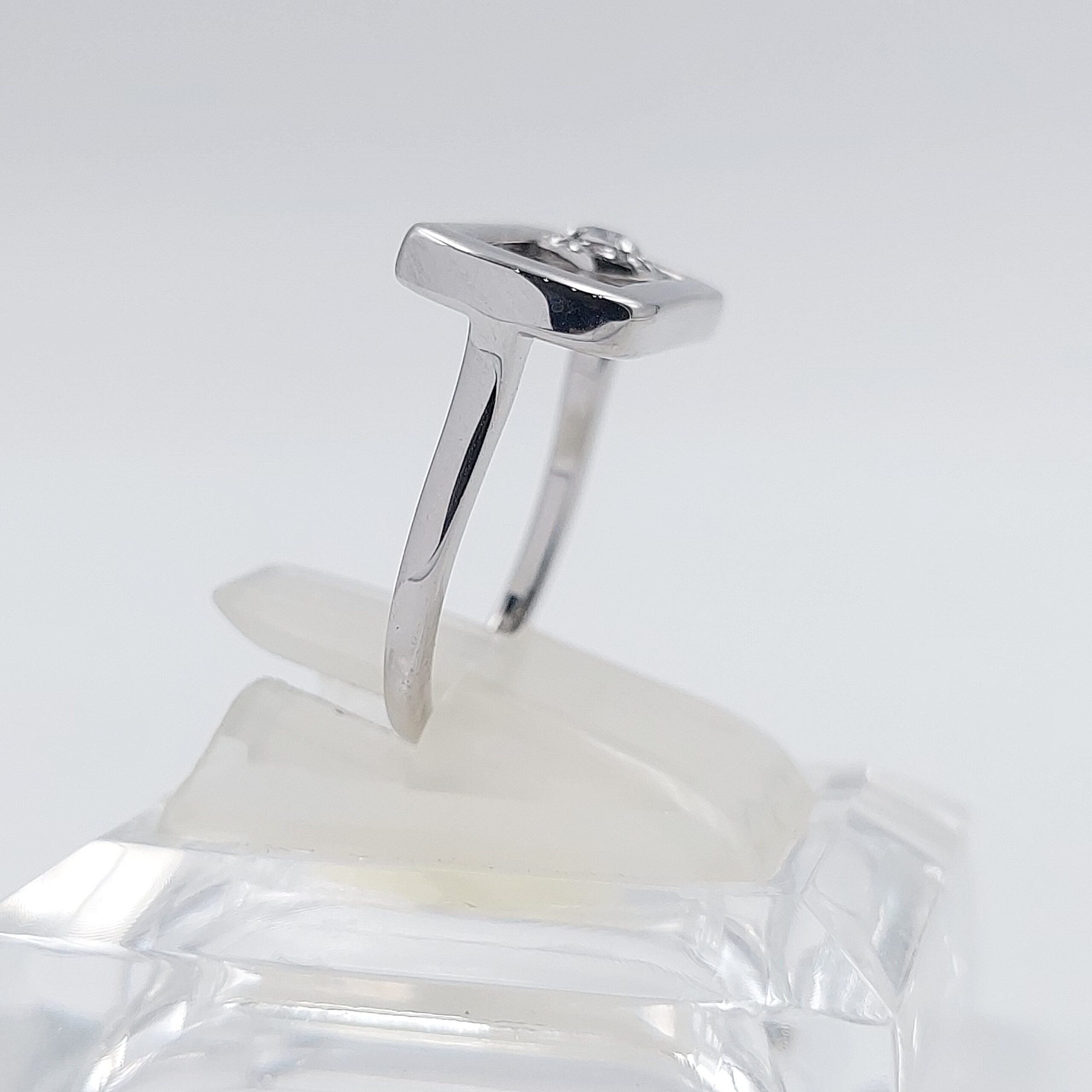 Efektan prsten modernog geometrijskog dizajna izrađen od rodiniranog srebra 925. Karakteriše ga pravougaoni okvir unutar kojeg se nalazi blistavi kružni klaster cirkona. Težina 4,2 g, unutrašnji prečnik 17 mm. Savršen za ljubitelje savremenog stila