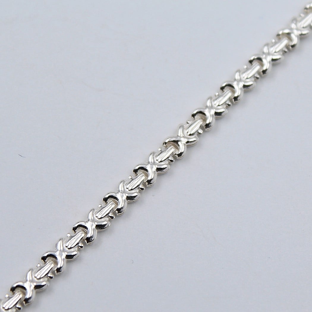 Elegantna narukvica izrađena od srebra 925, sastavljena od sjajnih povezanih karika i diskretnim linijskim detaljima. Moderan i sofisticiran dizajn čini je pogodnom za svakodnevno nošenje, ali i za svečane prilike.