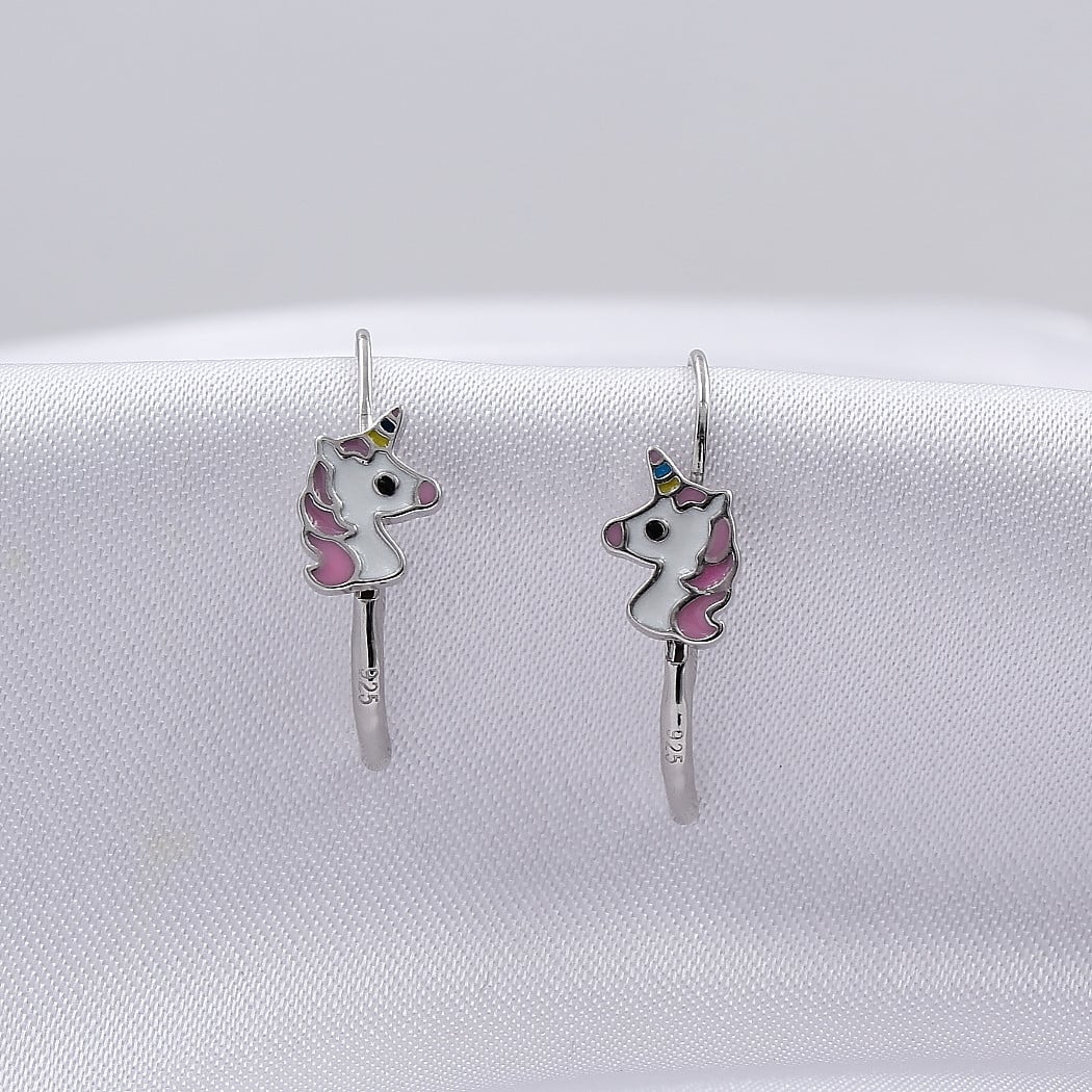 Uvedite vašu devojčicu u svet magije i bajki! Ove predivne srebrne minđuše u obliku jednoroga ručno su oslikane veselim bojama emajla. Sigurne, lagane i neodoljivo slatke – savršen su poklon za svaku malu sanjalicu koja veruje u čuda.