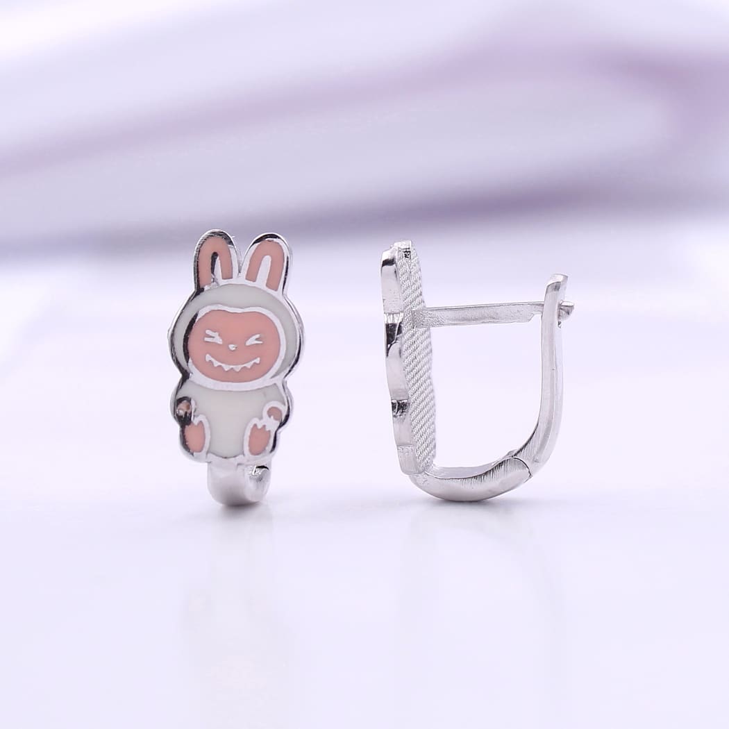 Dizajn i Izrada Umesto klasičnog zeke, ovaj model krasi karakterističan nestašan osmeh sa zubićima, što mu daje poseban šarm i karakter. Kombinacija belog i nežno roze emajla na srebrnoj podlozi ističe detalje lica i čini ih veoma efektnim na uhu. Ovo nisu obične minđuše, već pravi modni iskaz za male trendseterke.