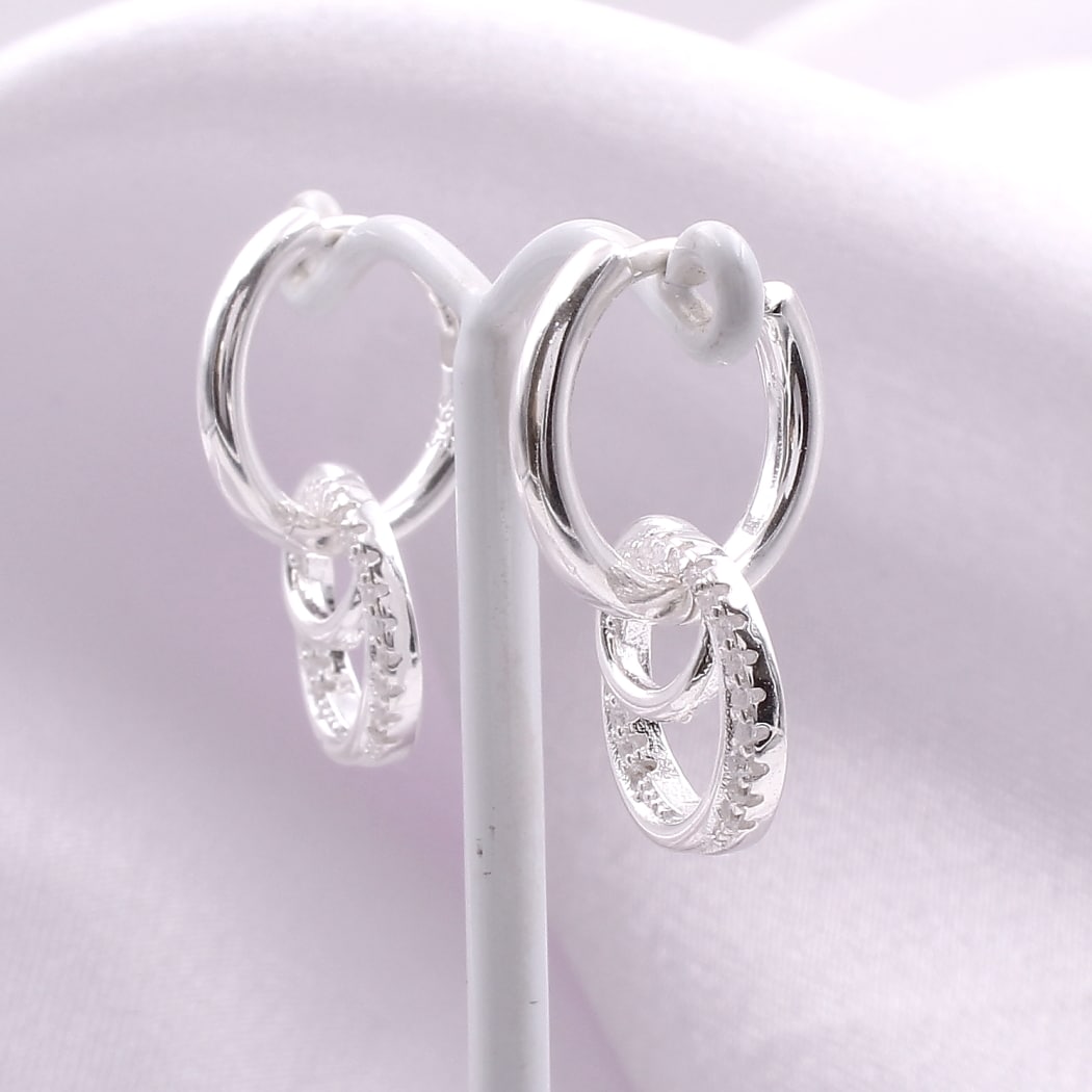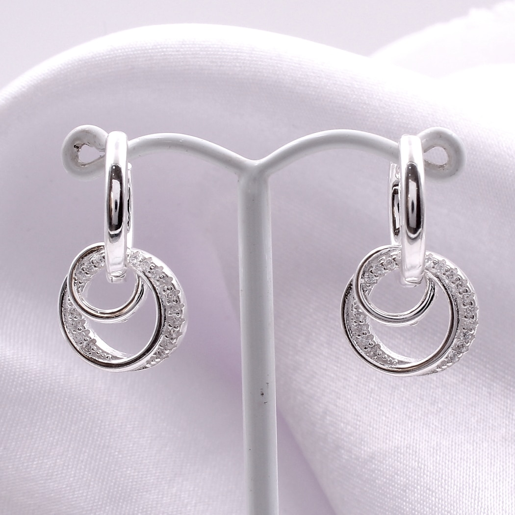 Luksuzne srebrne minđuše (925) u formi širokih alki, prekrivene nizovima blistavih cirkona. Savršen spoj masivnosti i čistog srebrnog sjaja za svečane prilike.