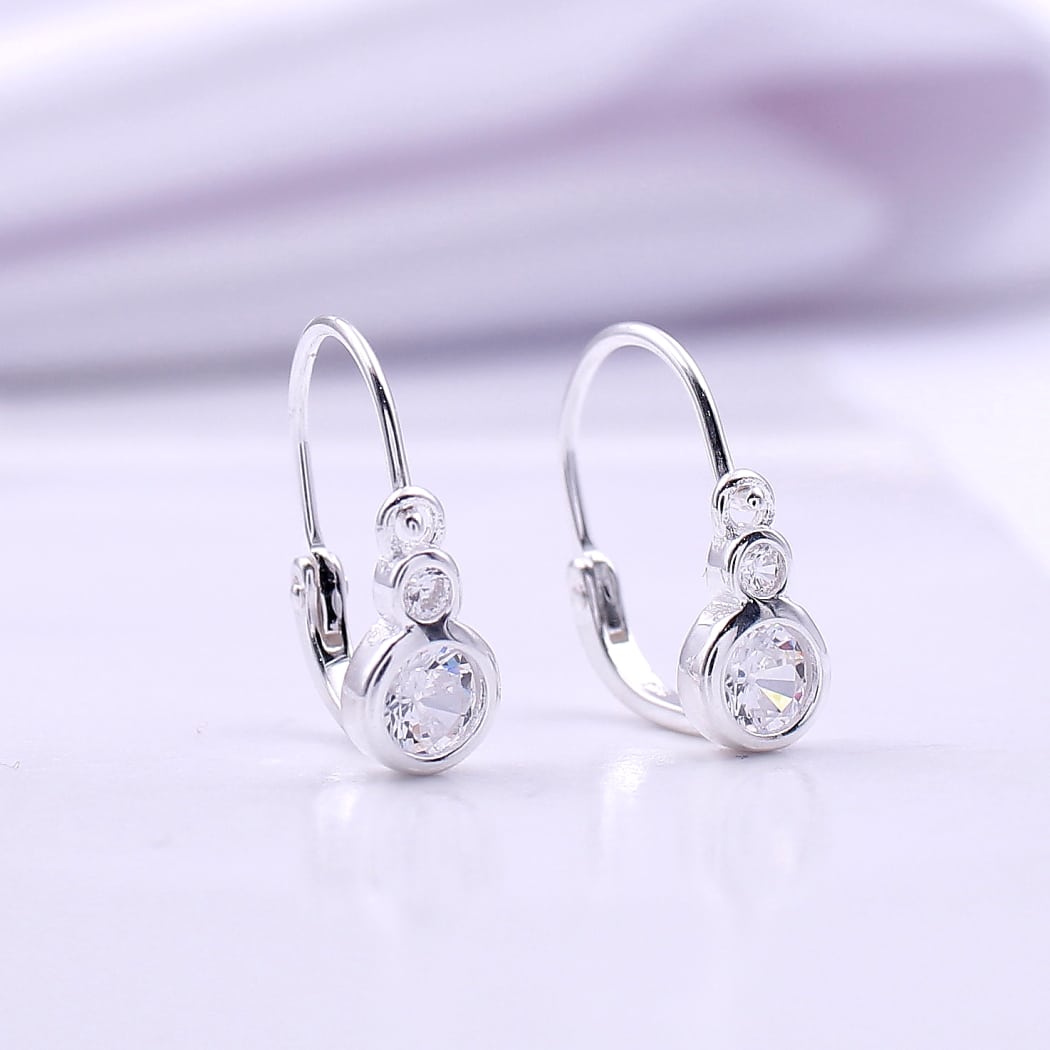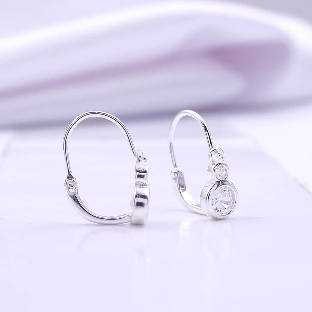 Prefinjene srebrne minđuše (925) sa dva blistava cirkona različitih veličina. Karakteriše ih sigurno i udobno kopčanje u gornjoj zoni, pružajući moderan i uredan izgled na uvetu.